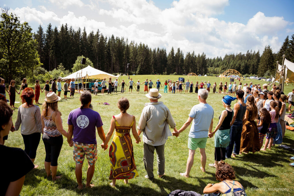We celebrate our aliveness on a beautiful festival location in the middle of the Black Forest. It is a wonderful place with a huge & soft meadow in the middle of a large forest.